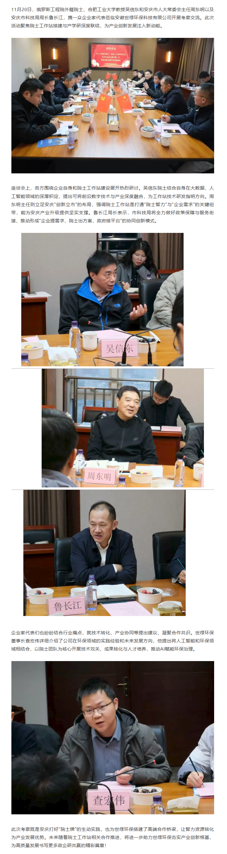 院士領(lǐng)銜,聚智賦能!世綠環(huán)保迎重磅考察,共話院士工作站建設(shè)